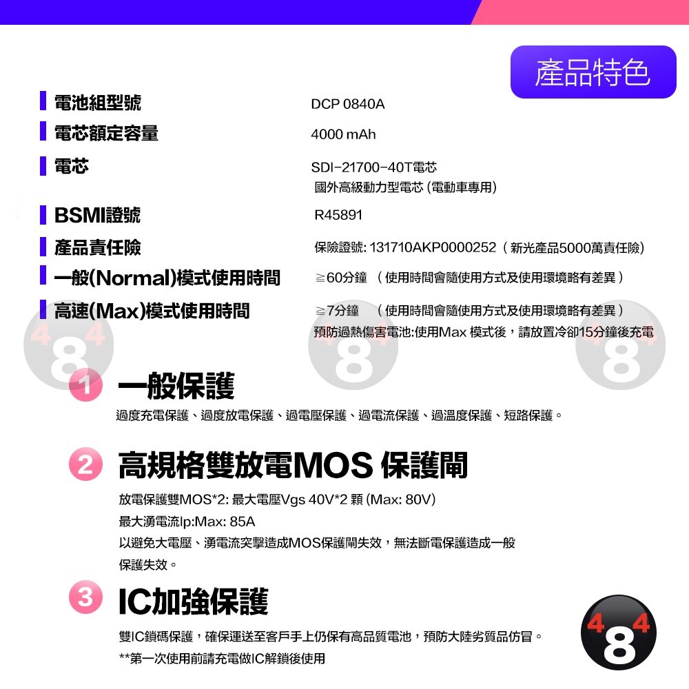 使用電芯:4000mAh電池 韓國 三星Samsung 21700-40T電芯