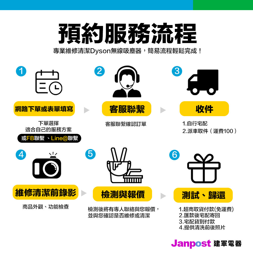 ➠ 免費機器外觀、電池、氣旋馬達等功能檢測(會提供檢修單並一同寄回)