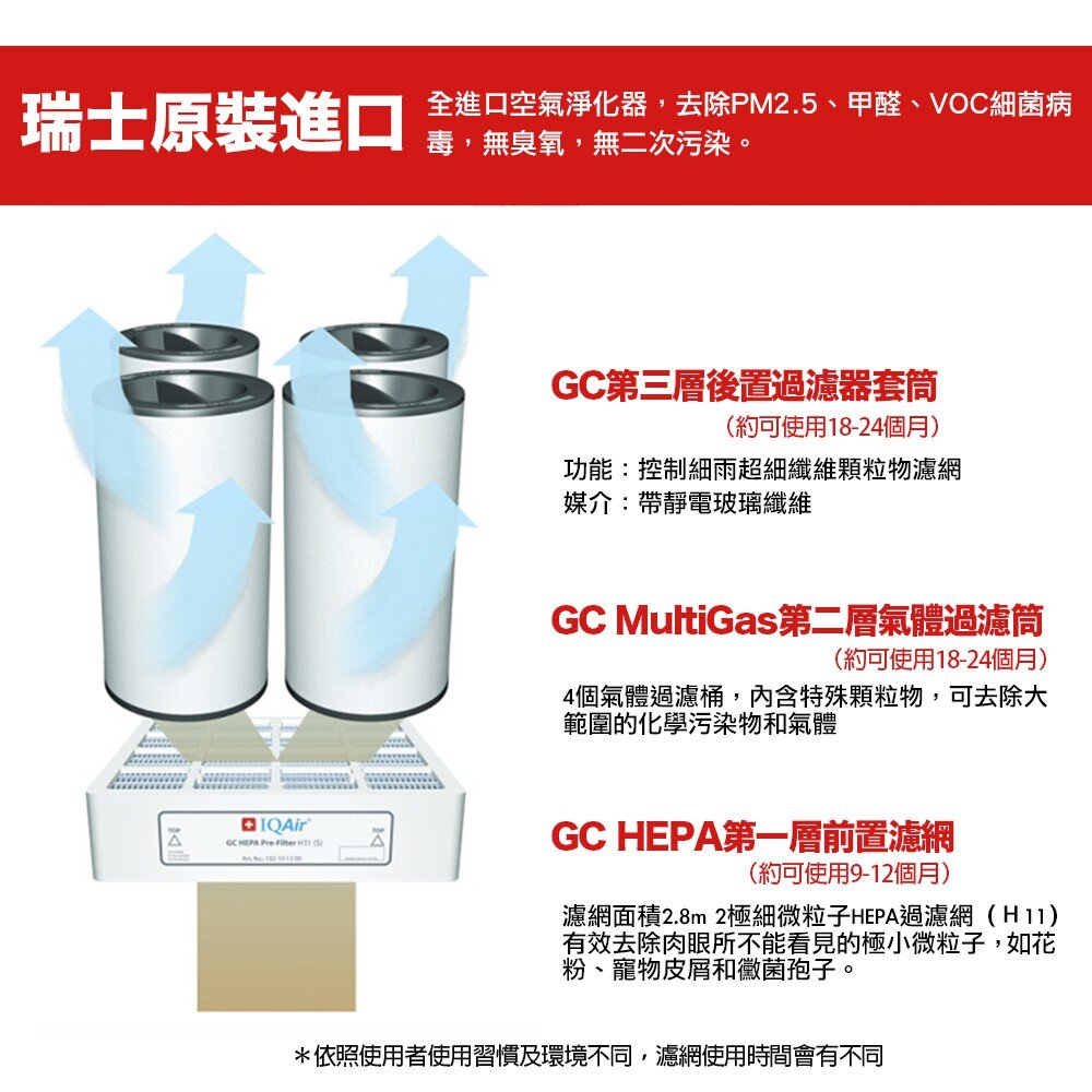 ⚠️以上為參考數值,在每天使用12小時,風速為3,污染程度為中等的假設下,大約的濾網使用壽命;每天使用時數、風速大小設定、污染程度設定都會影響濾網壽命指示燈的顯示頻率。另外,因使用環境的污染濃度、環境溫濕度及機器保存等因素之下,濾網的實際可用壽命可能會有異。