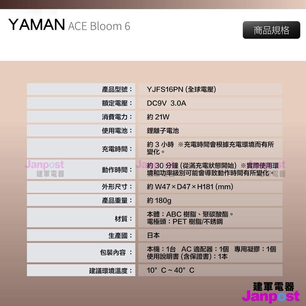 保固一年 日本製 原廠正品 雅萌 YAMAN Bloom 6 附凝膠