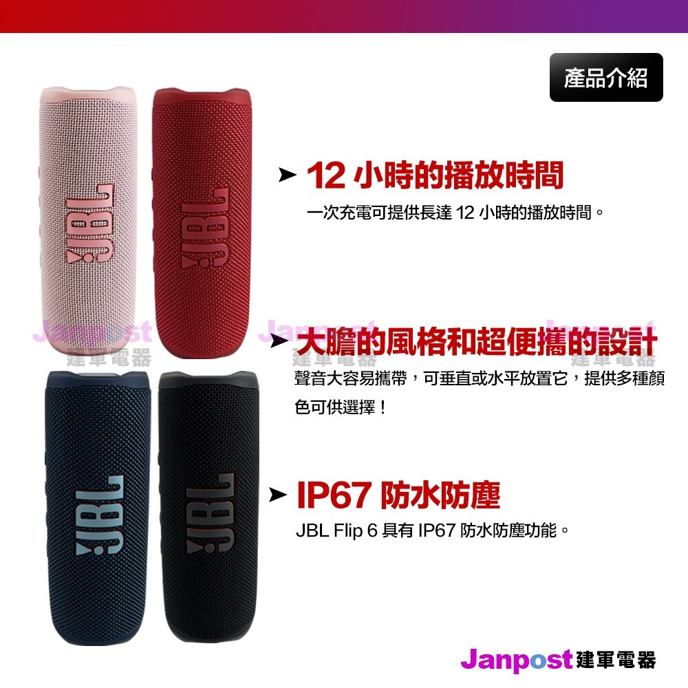 保固一年 JBL FLIP6 flip 6 防水藍牙喇叭 ( Flip5 可參考) 藍芽 音響 可串連 原廠原裝正品 全新