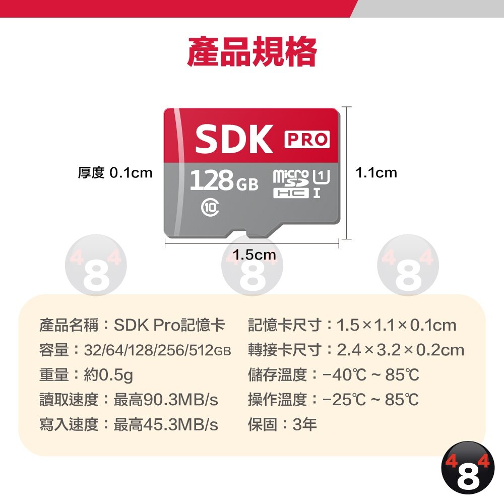 SDK Pro記憶卡 三年保固 32GB 64GB 128GB 256 GB 高速記憶卡 SD卡套 支援手機平板監視器