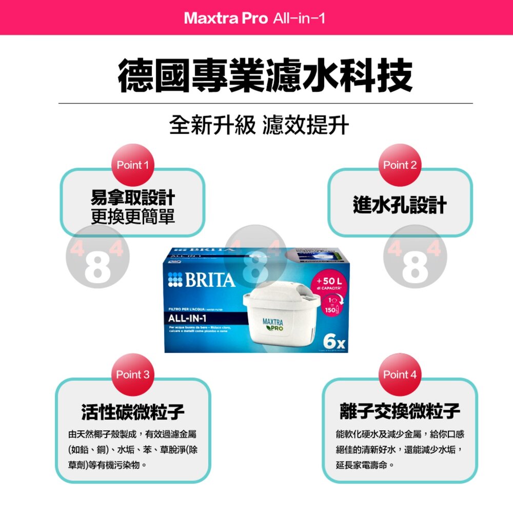 BRITA 原廠正品 德國製 增加使用50% MAXTRA Pro All-in-1 濾水壺濾芯 濾芯