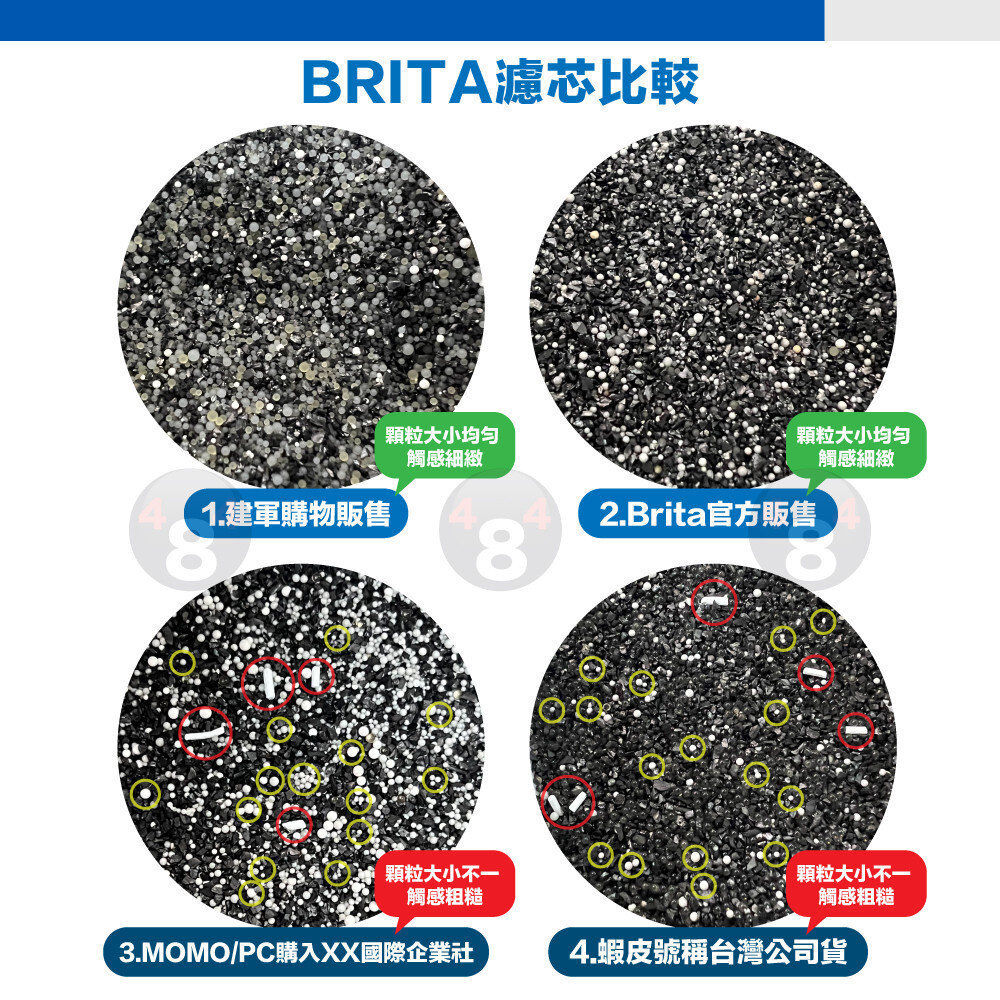🚨最近有幾位賣家自稱販賣台灣公司貨的全效型跟去水垢(價格特別低的那幾家),實際上都是在賣假貨!!!還自稱是授權經銷商,求證Brita官方後,確認根本沒有這家,一貫的手法都是用台灣實體店的商品當作照片,然後出貨另外出一套,中文標籤是另外貼上的,不是像市面上公司貨都是直接印刷在盒上的,商品拆開後檢查濾芯成分也非常粗糙,大小顆粒不均,跟原廠的細緻粉末差異甚多,袋上的製造日期也無法刮除(正品的可以),還有很多假貨的特徵,請見商品真假分辨說明圖,請買家留意以免受騙,如果不幸發現買到假貨可以就近向警察機關報案檢舉詐欺跟偽造文書,提醒身邊的人.捍衛自己的權益。
