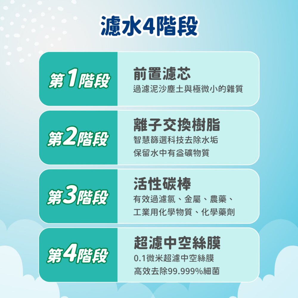 2. 4階段超微濾,微米超濾中空絲膜,過濾99.999%細菌