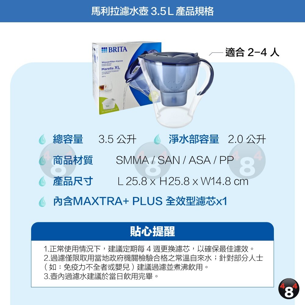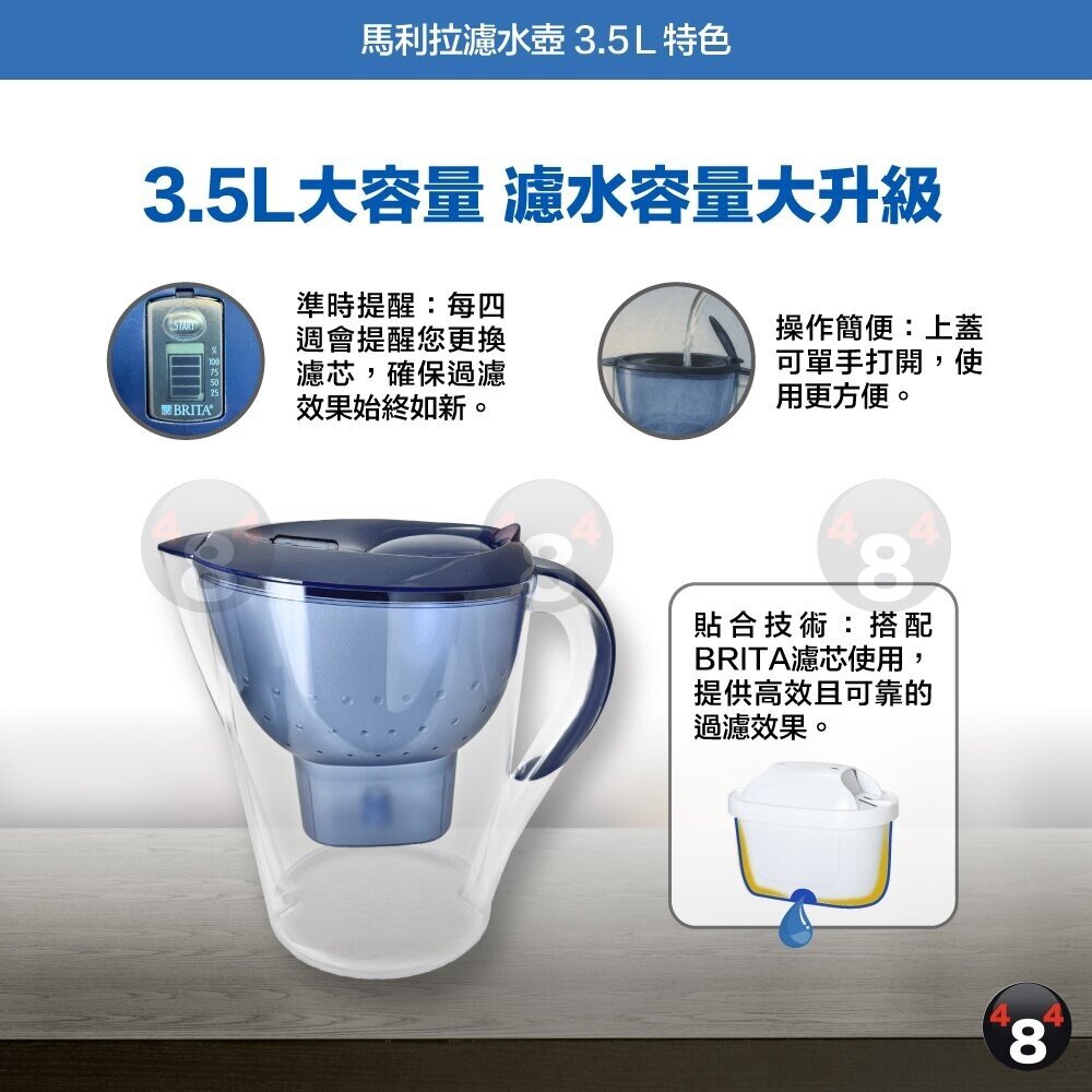 【BRITA】德國 Brita Marella馬利拉濾水壺3.5L+MAXTRA+PLUS 全效型濾芯 (共1壺1芯) (藍/白)