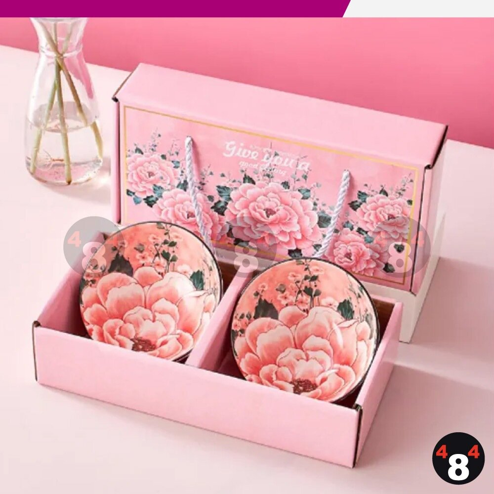 牡丹花 禮品 送禮 碗筷套組 禮盒 陶瓷碗 餐具 家用碗筷 陶瓷碗組