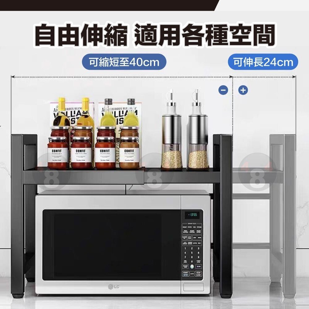 #雙層伸縮式置物架 #收納層架 #廚房伸縮置物架 #伸縮微波爐架 #廚房收納架 #氣炸鍋架