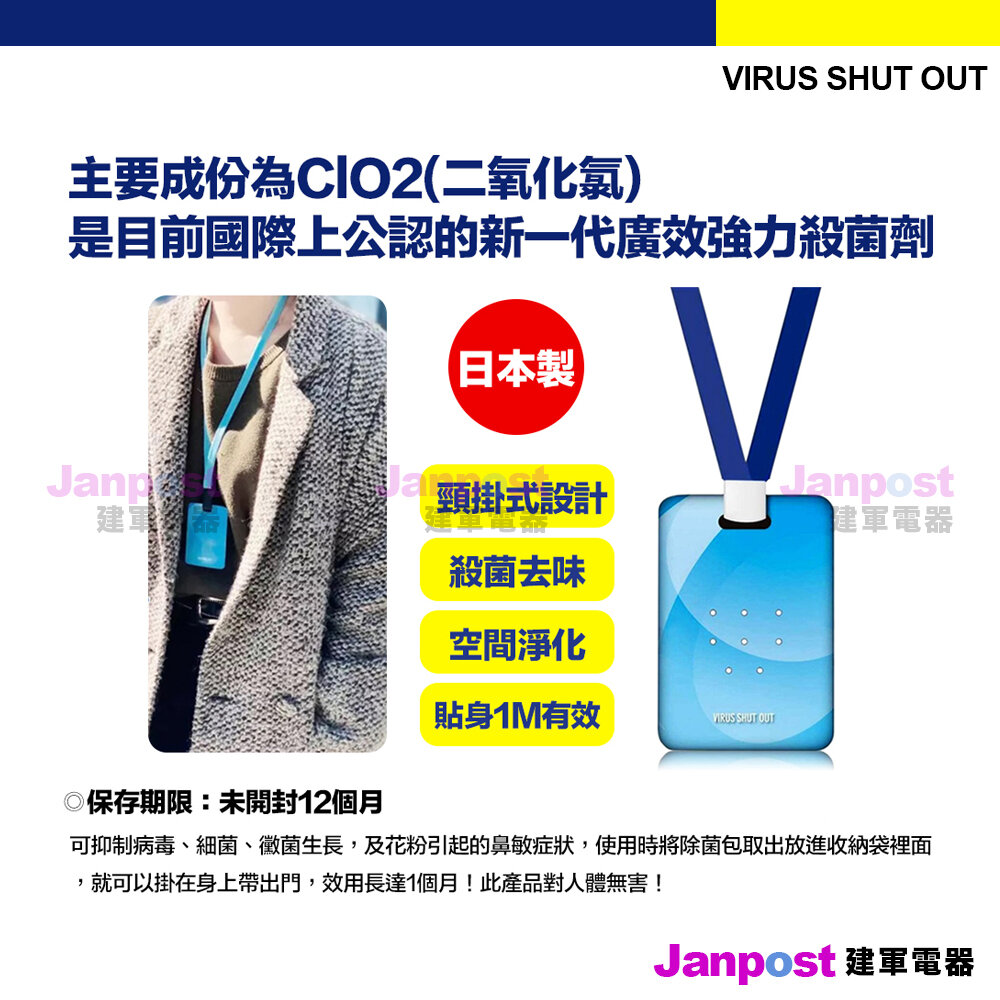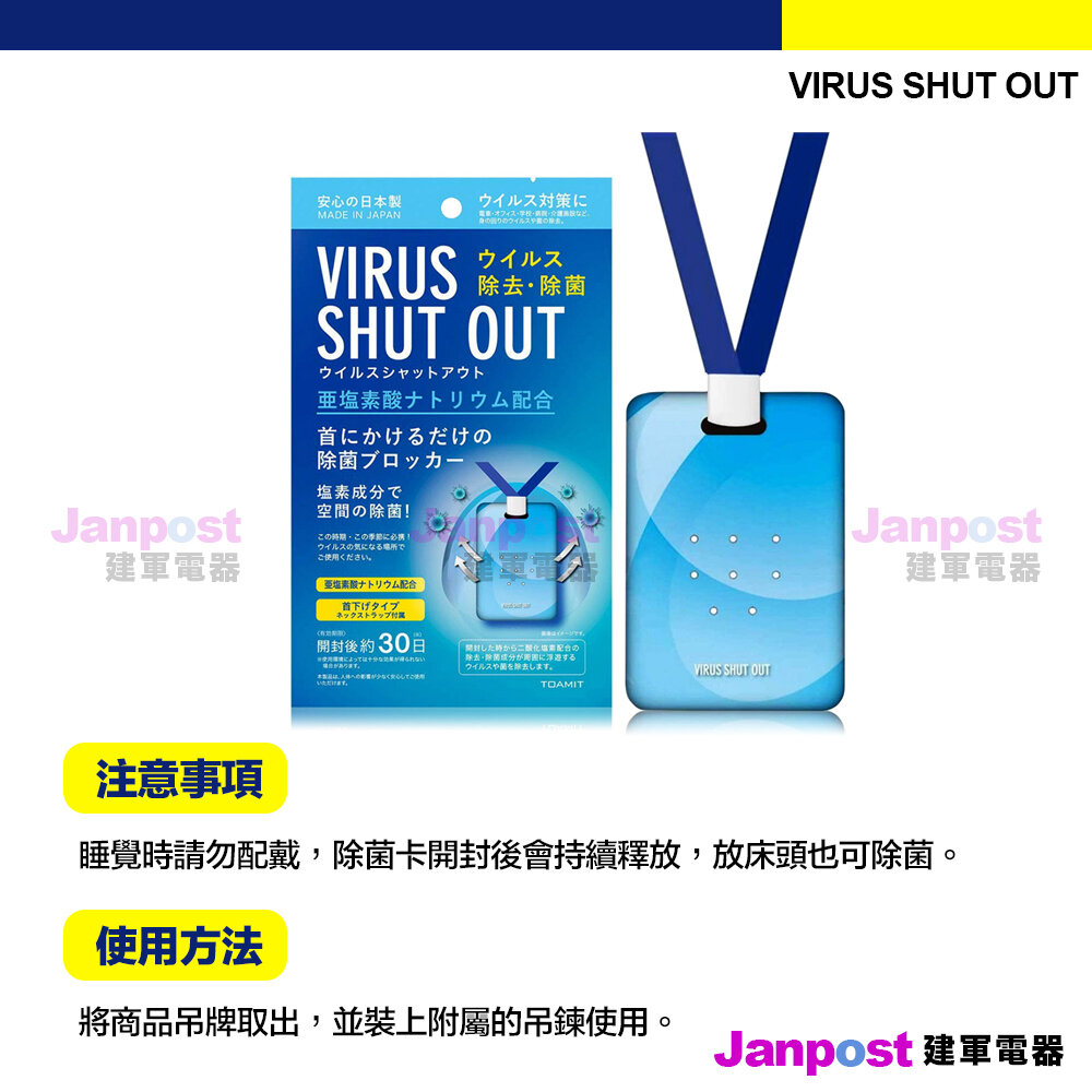 TOAMIT 日本 Virus shut out 掛頸隨身除菌卡 隨身空氣淨化殺菌袋