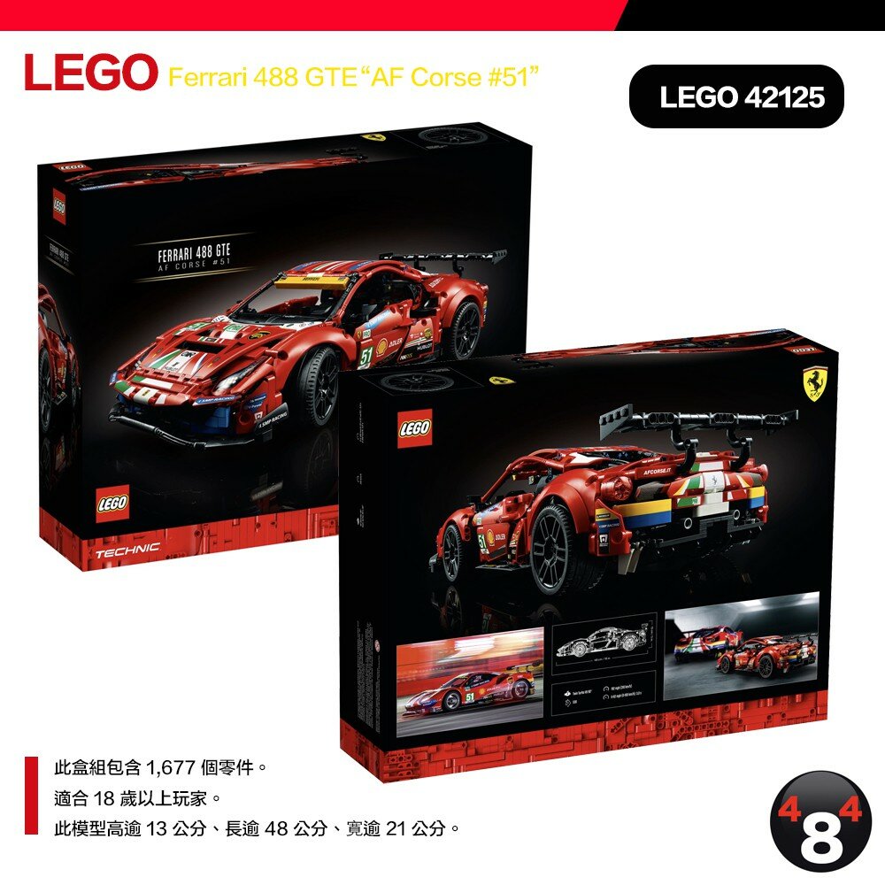 【LEGO 樂高】限量 熱銷 42125 TECHNIC 系列 Ferrari 488 #51 不挑盒 全新未拆