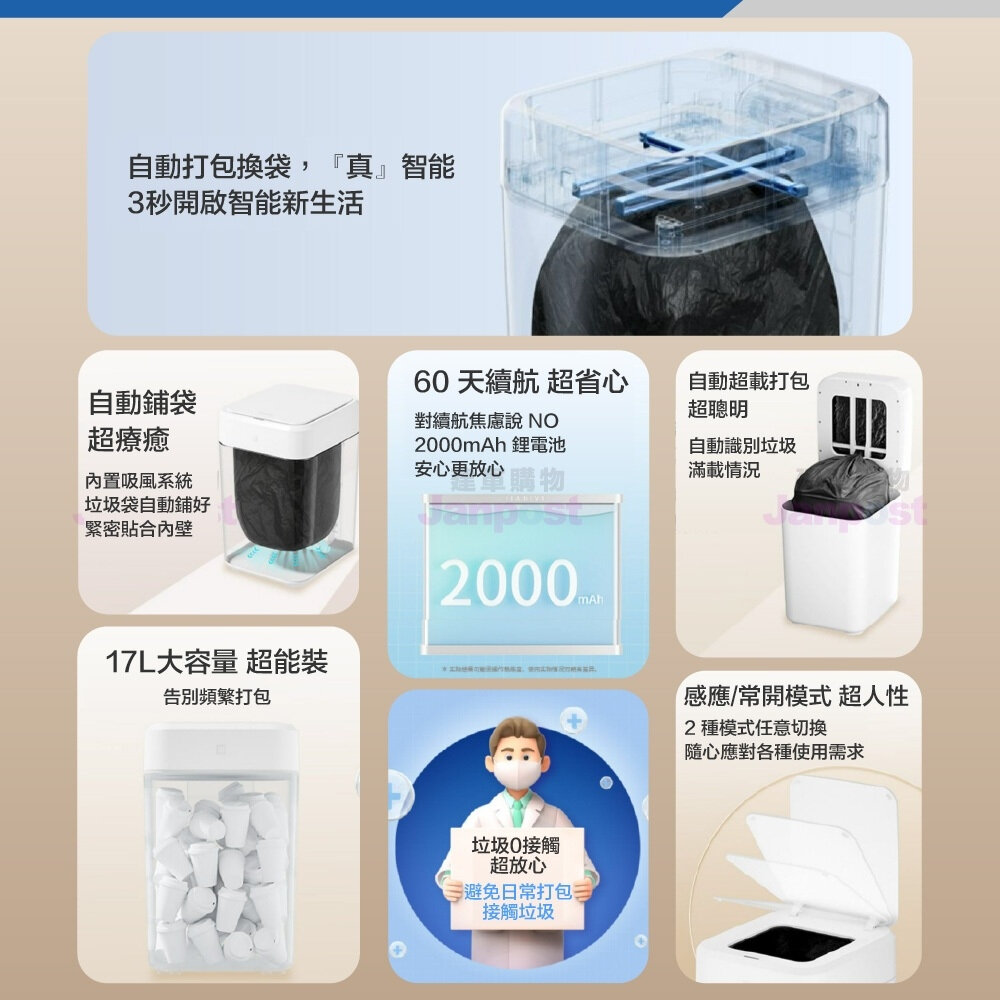 ‣ 自動鋪袋,一鍵打包
