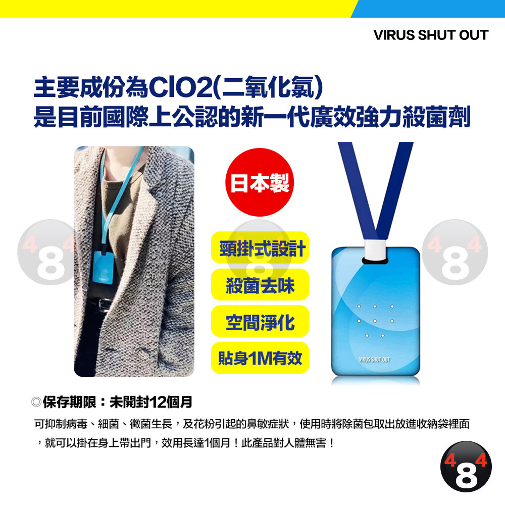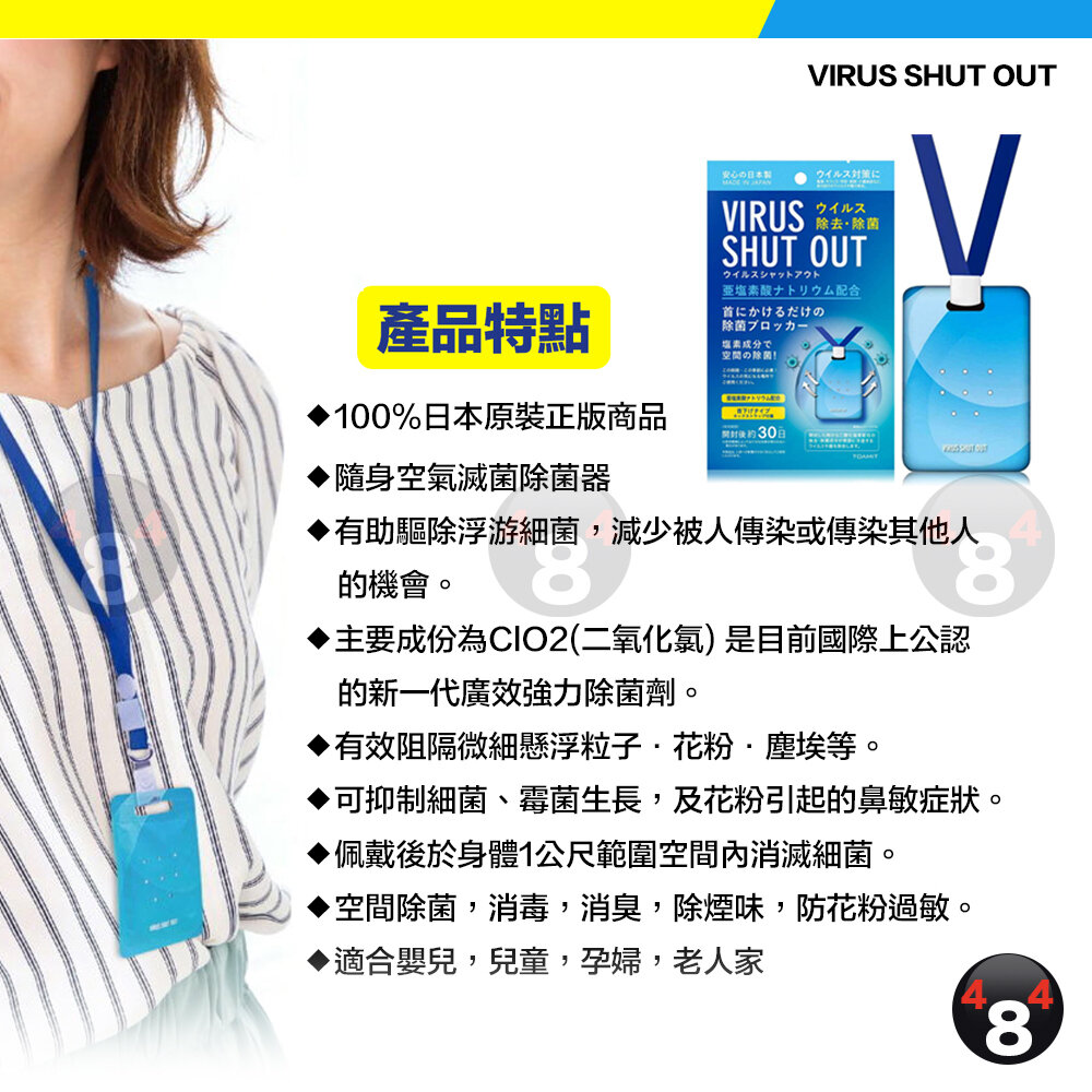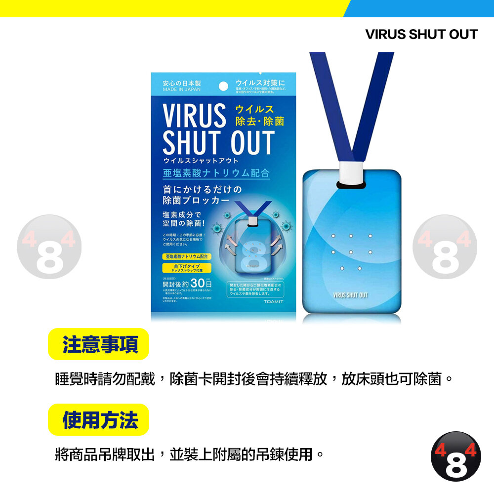 TOAMIT 日本 Virus shut out 滅菌 防護 空氣淨化 殺菌去味 掛頸隨身除菌卡 除菌卡 殺菌袋