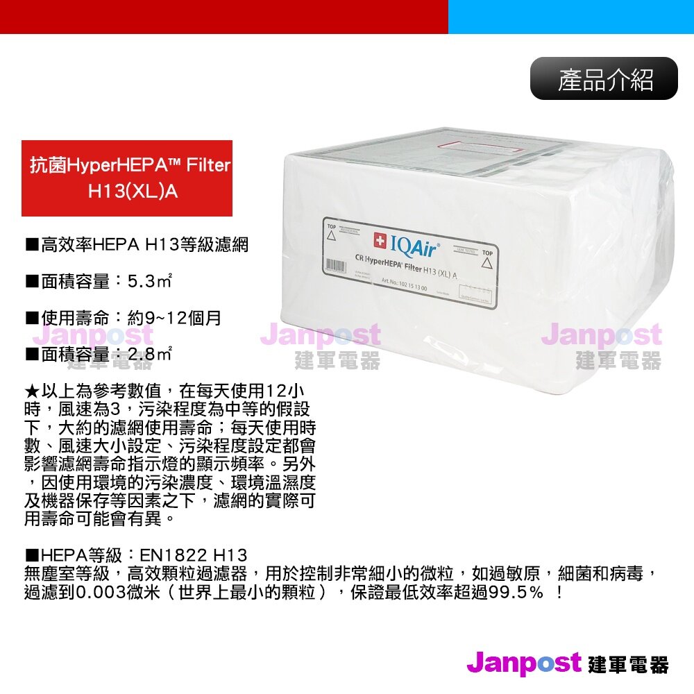 HEPA等級:EN1822 H13