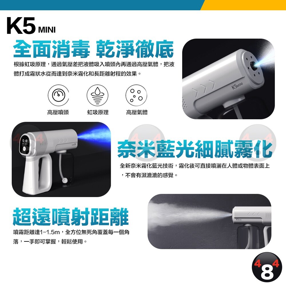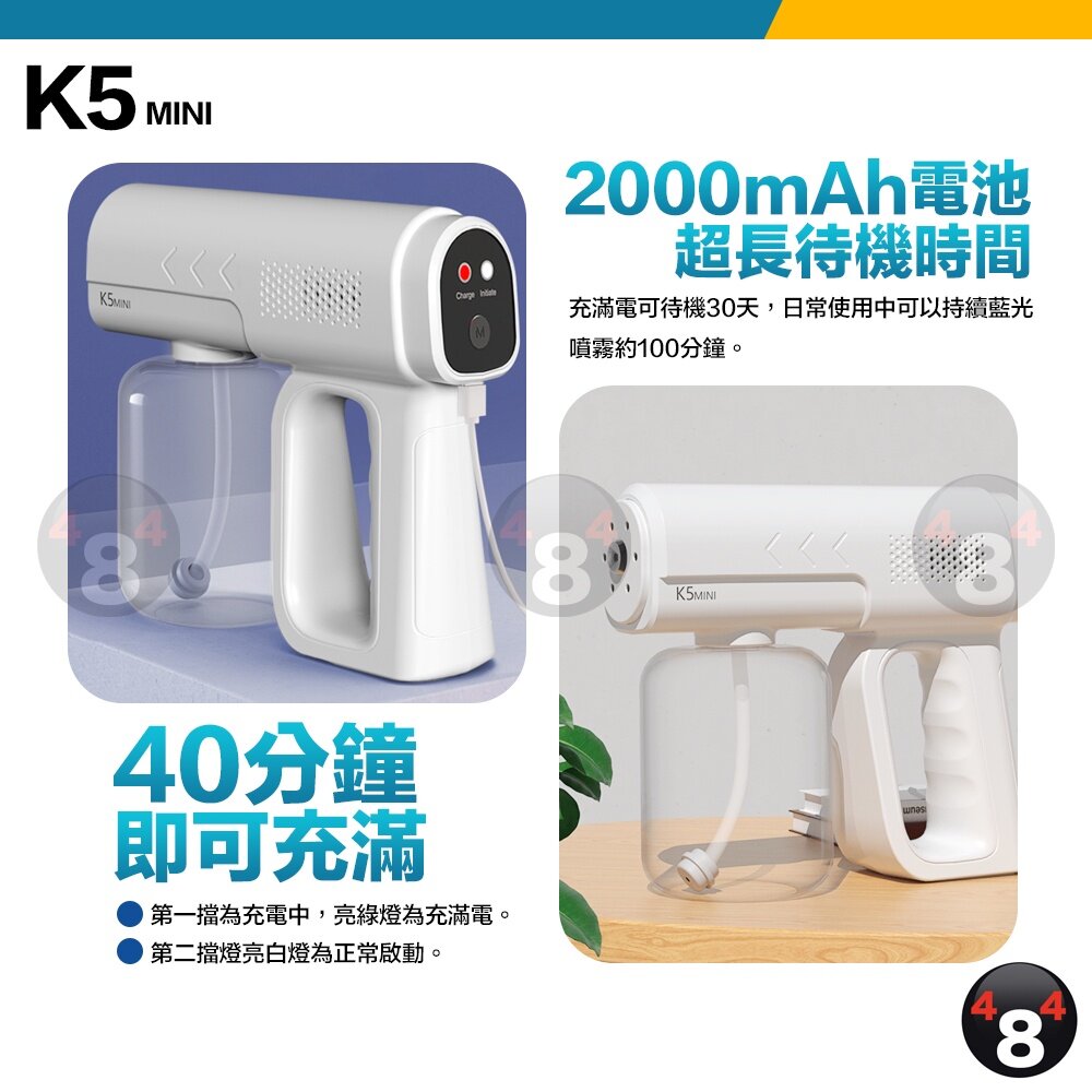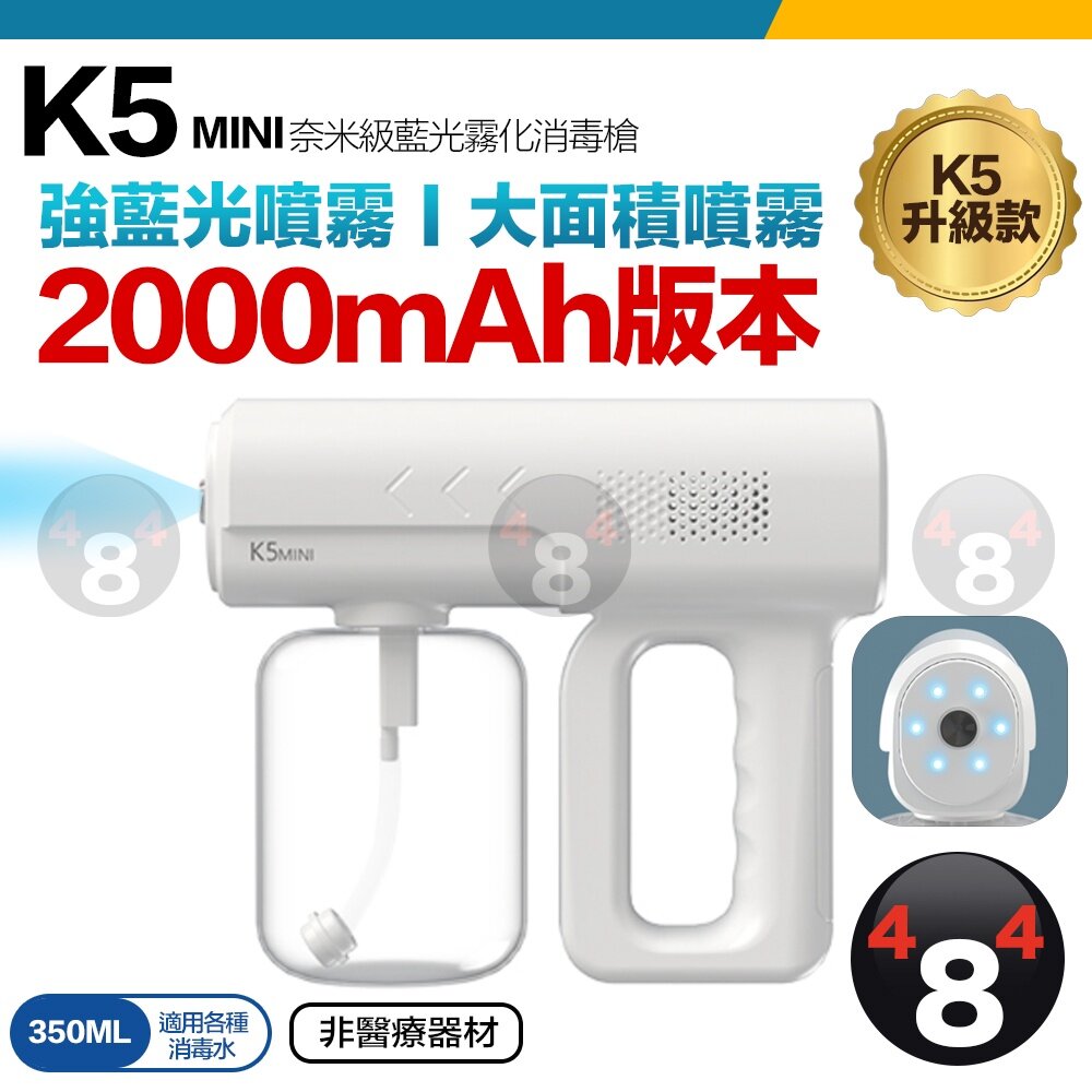 防疫必備 30天保固 升級款 K5 mini 2000mAh 奈米藍光霧化消毒槍 350ml 酒精噴槍 噴霧槍 噴霧機